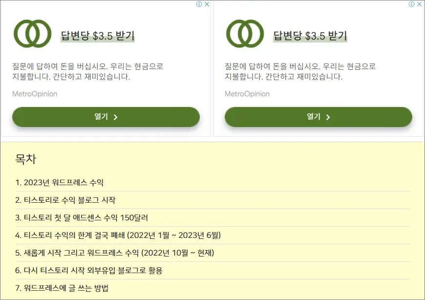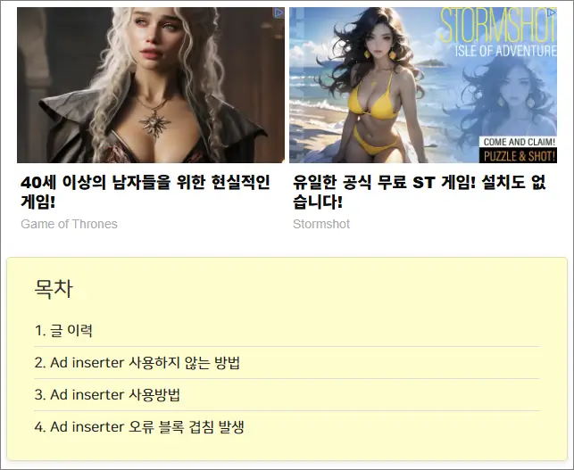 아래 이미지와 같이 목차 위에 광고가 표시된다.