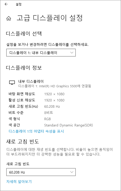 of 12Windows HD Color 설정