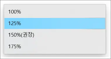 보통 권장을 사용하지만, 노트북의 경우 너무 커서 100% ~ 125%를 사용 하는 경우도 많다. 나 또한 125%를 기준값으로 사용하되, 종종 넓은 화면을 봐야 할 때 100%로 변경해서 사용하고 있다.