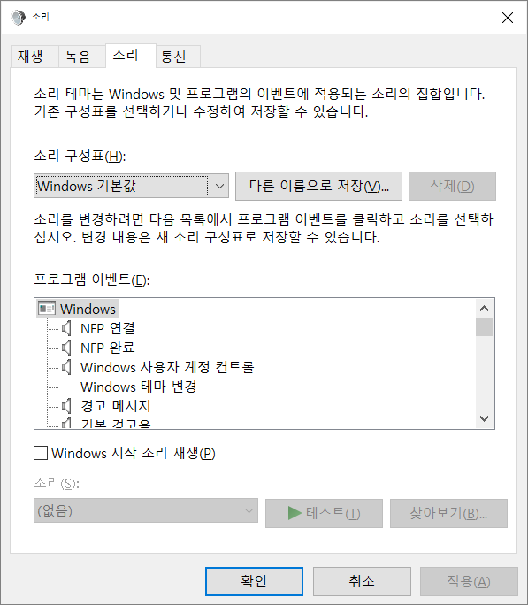 출력장치, 입력장치, 사운드 옵션을 설정할 수 있다.