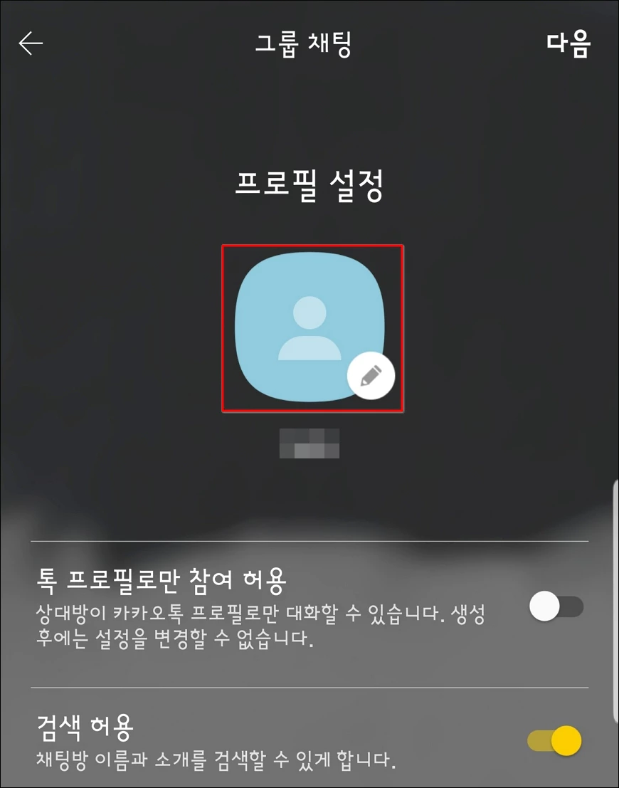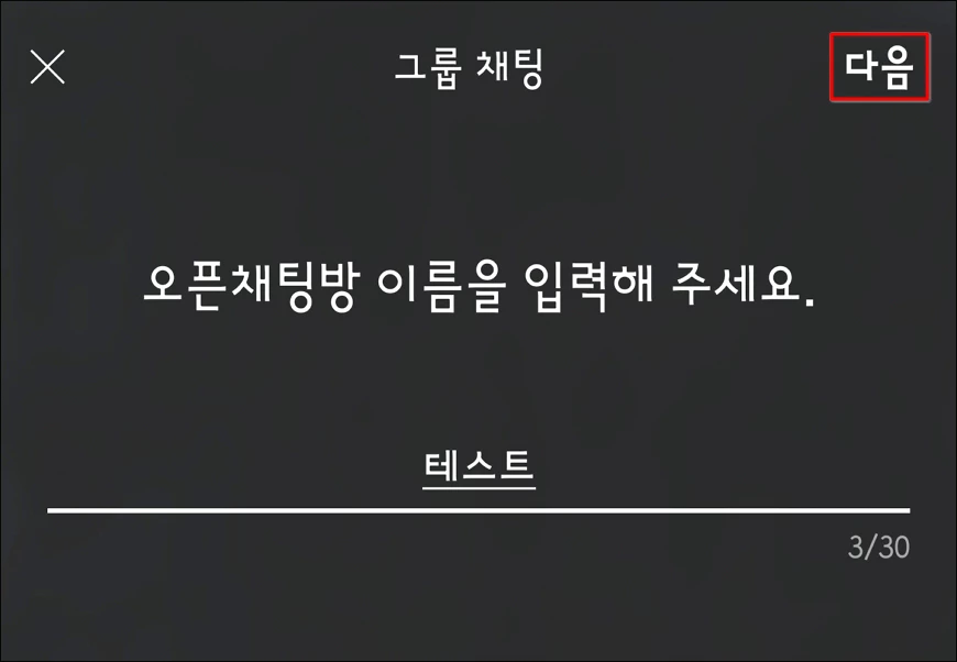 ③ 오픈채팅방 이름을 입력하고, 다음을 선택한다.