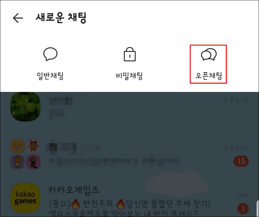 ② 새로운 채팅이라고 뜨는데, 셋 중 오픈채팅을 선택한다.