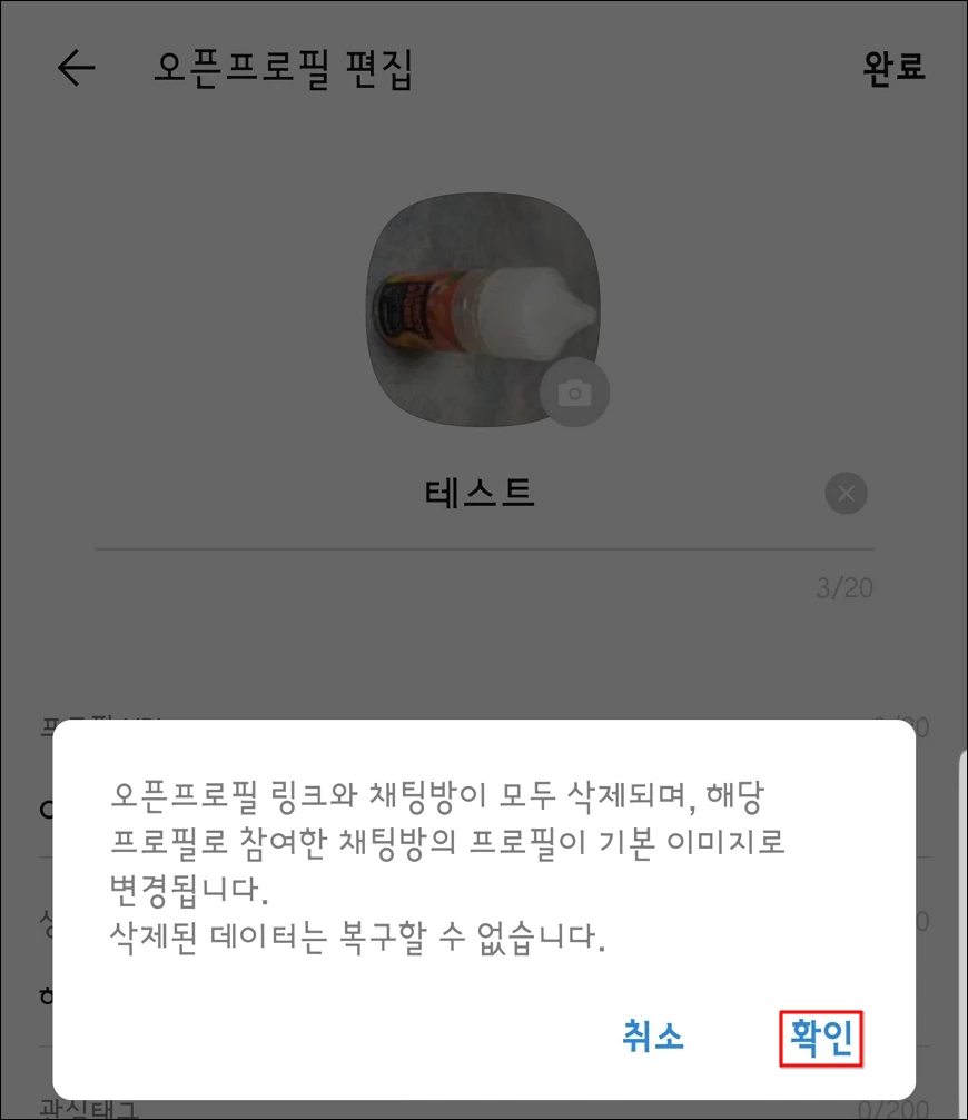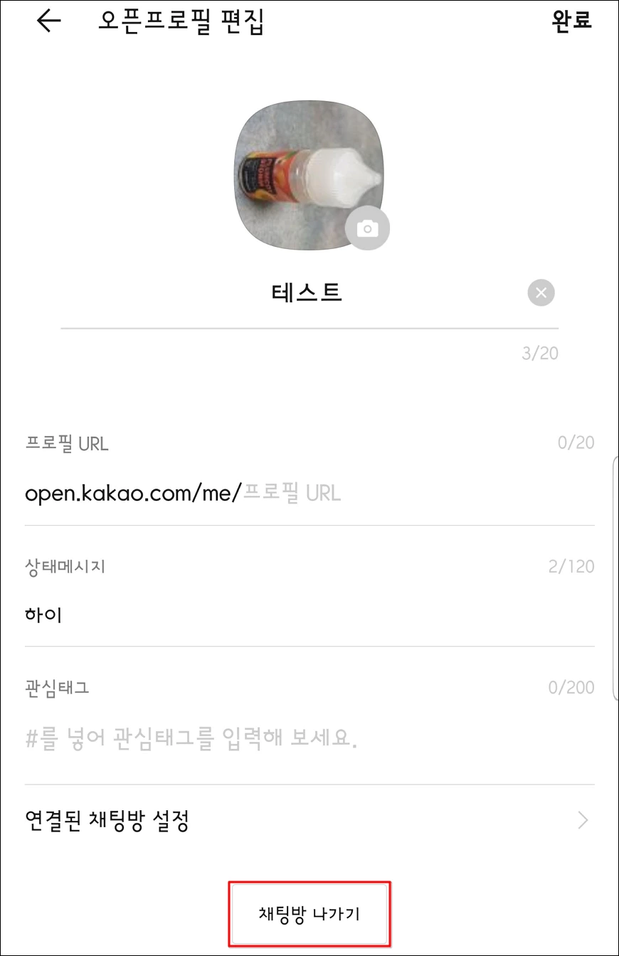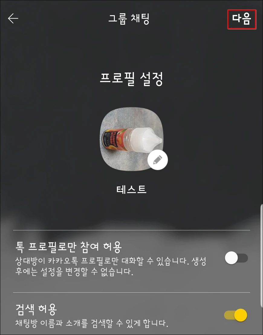 ⑦ 방금 만든 오픈채팅방의 프로필이 오픈프로필로 변경이 되었다. 다음을 선택한다.