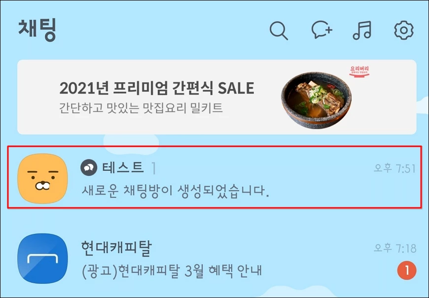⑩ 채팅 리스트에 방금 만든 오픈채팅방이 추가 되었다.