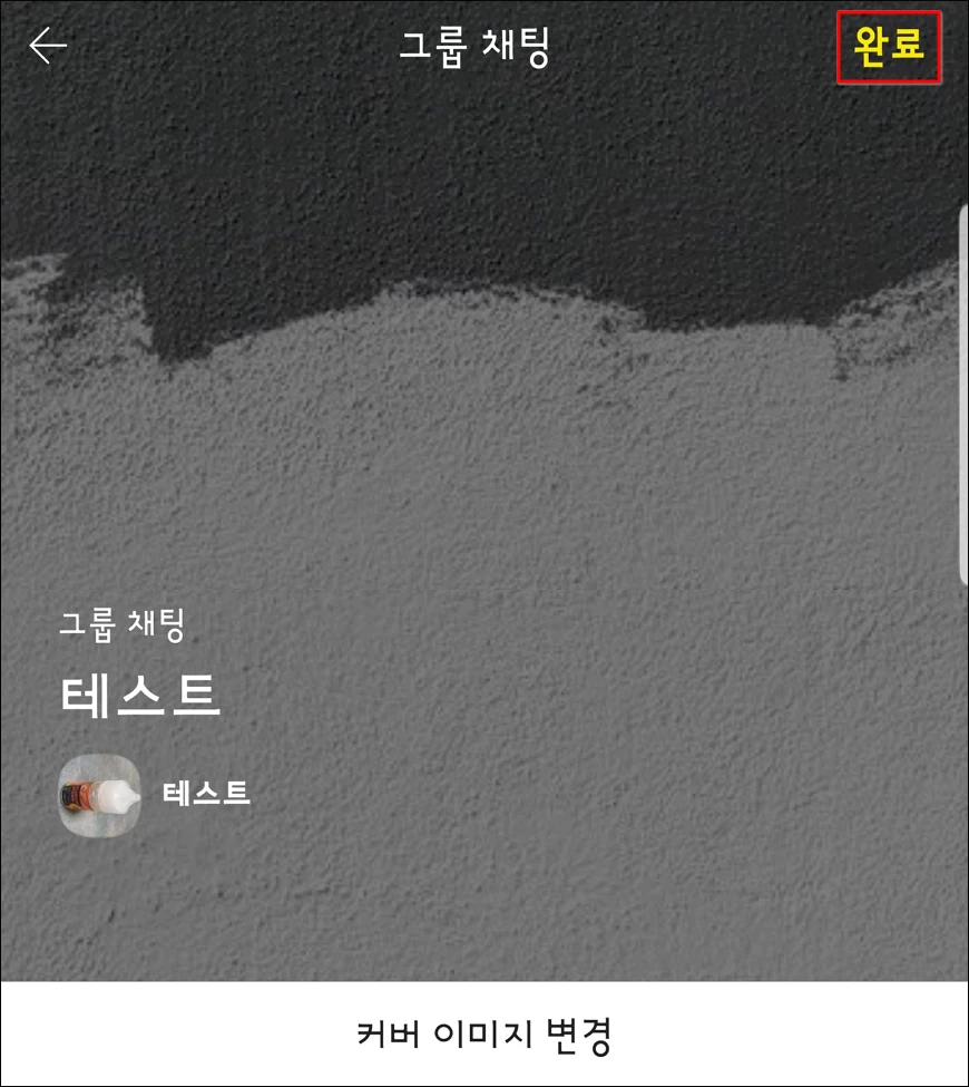 ⑧ 그룹채팅방이 만들어 졌다. 커버 이미지를 변경해도 되고 안해도 된다. 완료 선택한다.