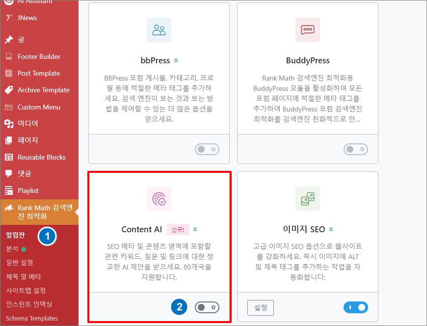 of 05Rank Math 플러그인 Content AI 비활성화하기